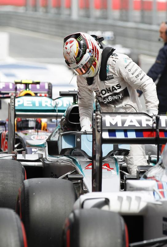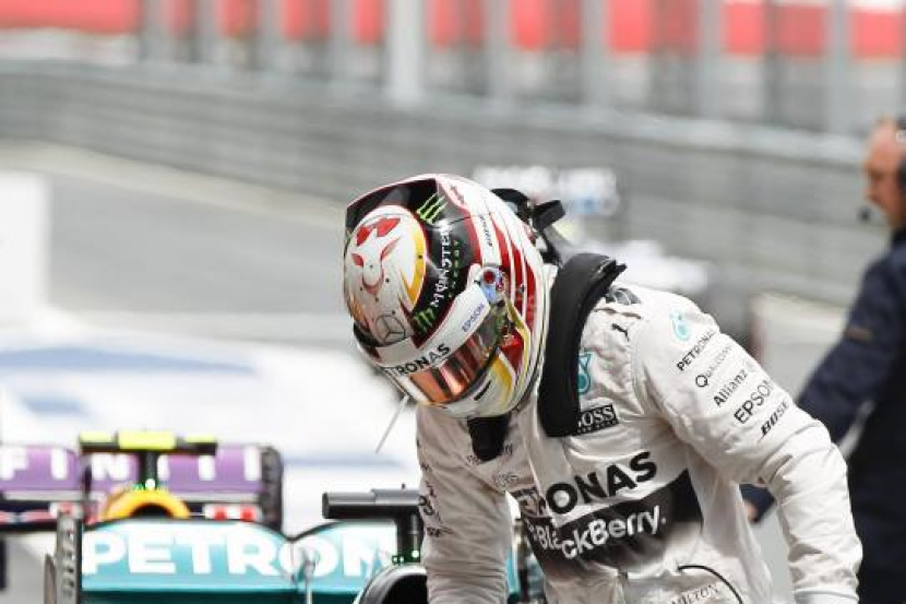 Pelumba Mercedes itu memastikan petak pertama menjadi miliknya pada aksi perlumbaan Ahad ini, manakala rakan sepasukannya Nico Rosberg di tempat kedua diikuti pelumba Ferrari Sebastian Vettel di petak ketiga.