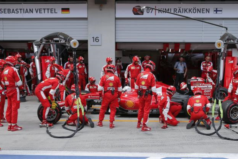 Vettel mendahului perlumbaan yang turut disaksikan oleh Pengerusi Ferrari, Sergio Marchionne tetapi kehilangan banyak masa apabila pasukan mekanik menghadapi masalah untuk menukar tayar sebelah kanan jentera tersebut.
