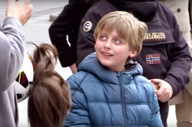 Ronaldo berbual dengan budak lelaki itu dan bertanyakan namanya sebelum menurunkan tandatangan pada bola tersebut.