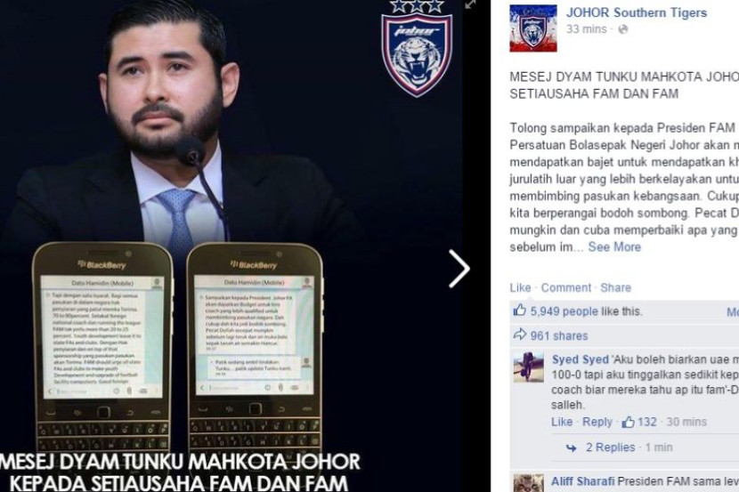 "Di sini dilihat kepentingan pendidikan. Para pemain yang sedia ada kini tidak boleh diselamatkan. Bukanlah salah mereka, tetapi salah FAM dan semua pasukan termasuk Johor, yang telah gagal dengan program pembangunan akar umbi kita sejak dahulu lagi.