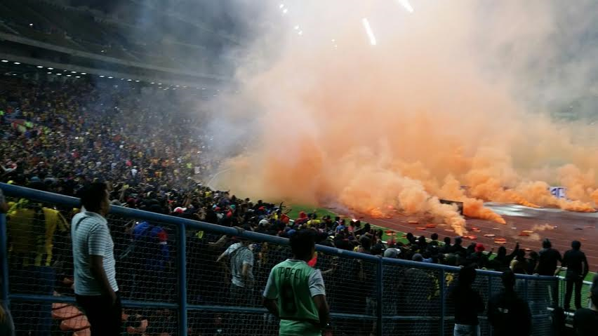 KUALA LUMPUR: Tatkala pemain Harimau Malaya berusaha keras mencari gol penyamaan dengan prestasi terbaik mereka menentang Arab Saudi, penonton pula mencemar kerancakan apabila membuat onar di Stadium Shah Alam, pada Selasa malam. Pada perlawanan keempat Kumpulan A kelayakan Piala Dunia 2018/Piala Asia 2019, Malaysia ketinggalan 1-2 kepada Arab Saudi sebelum perlawanan terpaksa dihentikan selama 30 minit. Tindakan segelintir penonton melontar masuk suar, bom asap dan mercun roket ketika perlawanan berbaki dua minit, sememangnya mengundang masalah besar kepada Persatuan Bolasepak Malaysia (FAM). Sepatutnya mereka sebagai penyokong memberi peluang kepada pemain untuk mencuba sekurang-kurangnya mencari gol penyamaan. "Perkara seperti itu tidak sepatutnya berlaku ketika pemain memberikan 200 peratus komitmen kepada perlawanan ini. Kemungkinan kita ada peluang untuk menyamakan kedudukan," kata pengulas bola sepak, Richard Scully, dalam siaran langsung Astro Arena. Tindakan mereka boleh mengundang tindakan tatatertib ke atas FAM sekiranya Arab Saudi mengemukakan aduan kepada Jawatankuasa Disiplin Konfederasi Bola Sepak Asia (AFC) dan Persekutuan Bola Sepak Antarabangsa (FIFA). Menurut jurucakap FAM, perlawanan Malaysia-Arab Saudi itu terpaksa ditangguhkan sehingga FIFA mengeluarkan kenyataan. Untuk rekod, AFC pernah mengenakan denda RM18,000 ke atas FAM pada 2009 selepas penyokong Kedah membakar mercun ketika sesi latihan kelab Muharraq dari Bahrain di Stadium Darul Aman, Alor Setar bagi aksi suku akhir kedua Piala AFC. Bagi perlawanan malam ini, pujian perlu diberikan kepada barisan pemain pilihan pengendali sementara skuad kebangsaan, Datuk Ong Kim Swee. Selepas tewas 10-0 ketika bertandang ke Emiriah Arab Bersatu (UAE), pemain negara berjaya mengekang asakan Arab Saudi dan mengikat pasukan yang dibimbing Bert Van Marwyk, 0-0 pada separuh masa pertama. Dengan formasi 4-3-3, corak permainan skuad Harimau Malaya berubah wajah malam ini dengan menyaksikan rangkaian pemain melaksanakan tugas dengan baik sehingga berjaya menghasilkan gol pembukaan pada minit ke-70 sebelum dibolosi dua kali dalam tempoh lima minit kemudian.