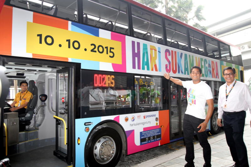 Khairy melancarkan program MyRapid Challenge sempena penganjuran julung kali Hari Sukan Negara pada 10 Oktober ini. Turut kelihatan Ketua Pegawai Eksekutif Kumpulan Prasarana, Datuk Azmi Abdul Aziz (kanan).