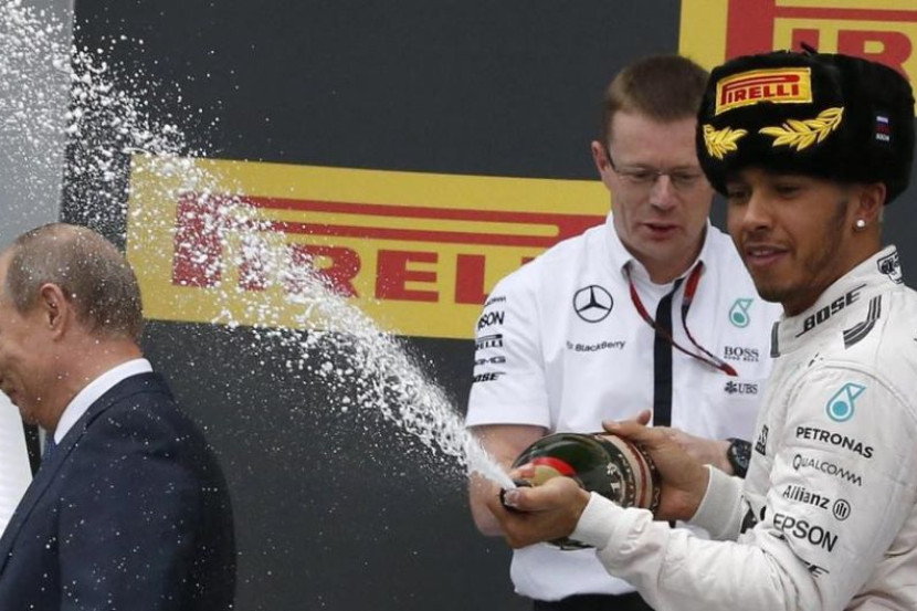 Hamilton, yang terbang pulang ke Britain untuk menyertai pasukannya meraikan kemenangan kedua berturut-turut pasukannya, sebelum ini berdepan kontroversi berkaitan aksinya menyembur champagne di podium.