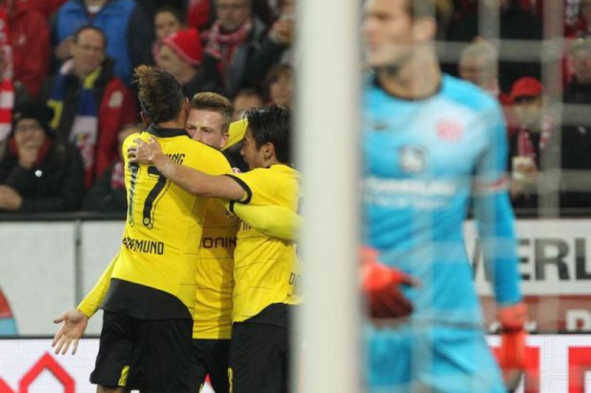 BORUSSIA Dortmund menewaskan pasukan tuan rumah, Mains 05 2-0 sekali gus menamatkan kemarau gol dalam tiga aksi Bundesliga untuk merapatkan kedudukan dengan pendahulu, Bayern Munich.