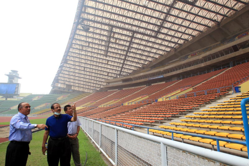 Abdul Karim Munisar (tengah) melawat Stadium Shah Alam baru-baru ini.