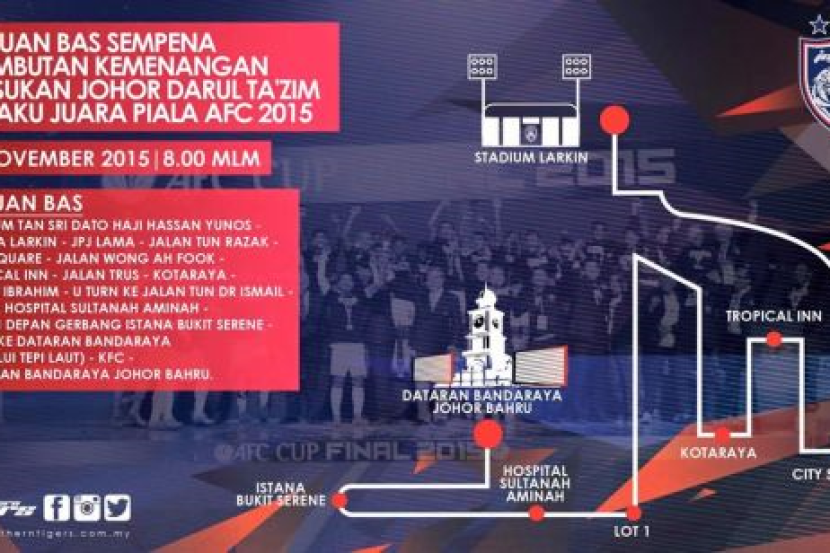 "Penyokong dijemput hadir beramai-ramai ke Dataran Bandaraya Johor Bahru bermula jam 8.00 malam untuk bersama-sama memeriahkan majlis sambutan itu," demikian menurut kenyataan itu lagi.