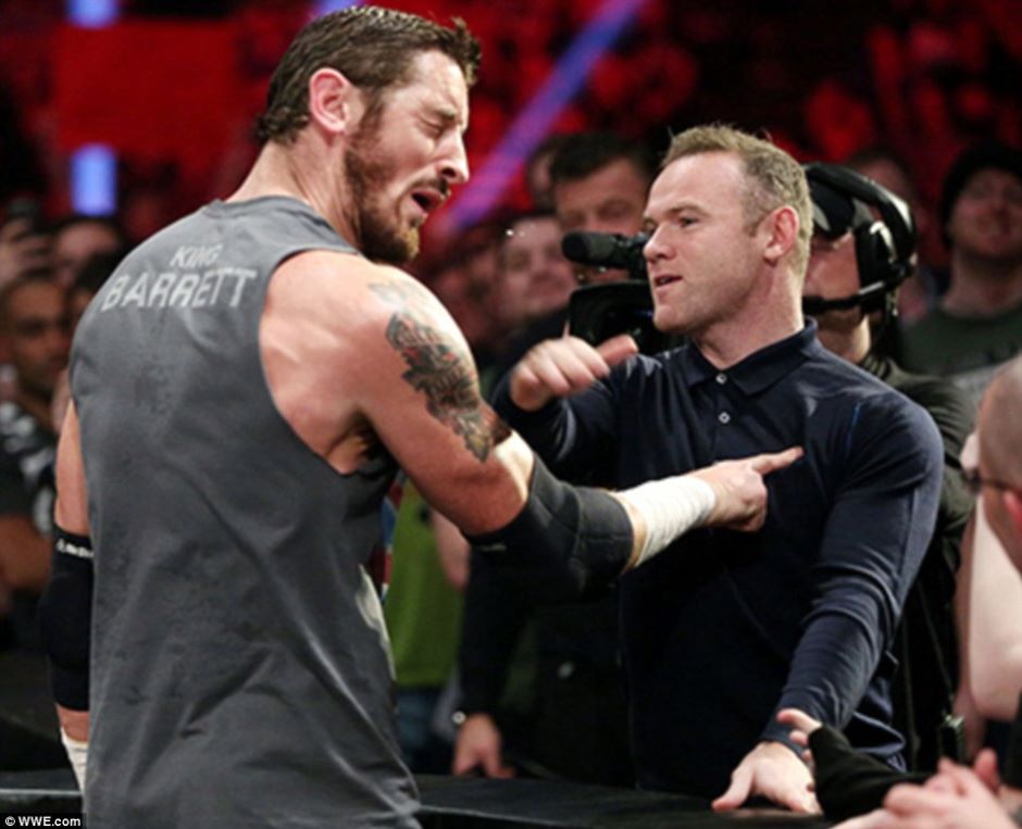 Ketika berada di barisan hadapan penonton, ahli gusti kelahiran Manchester, Wade 'Behemoth' Barrett cuma memalukan Rooney melalui pembesar suara.