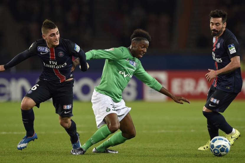 Aksi perlawanan antara pasukan Paris Saint-Germain (PSG) dan Saint-Etienne (ASSE).