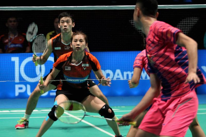 Pasangan beregu campuran negara Goh Liu Ying dan Chan Peng Soon (Kiri) ketika menentang pasangan China, Xu Chen dan Ma Jin pada Kejohanan Celcom Axiata Malaysia Open di Stadium Malawati Khamis: Foto: S.S KANESAN/The Star