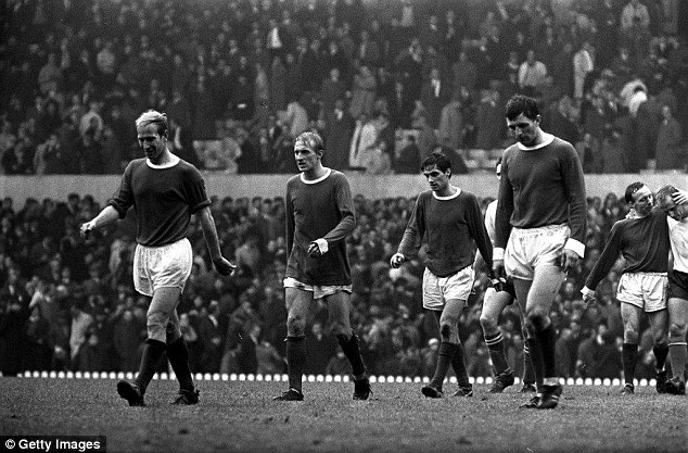 Penyerang legenda United (dari kiri) Charlton, Law dan Best yang dikenali Holy Trinity.