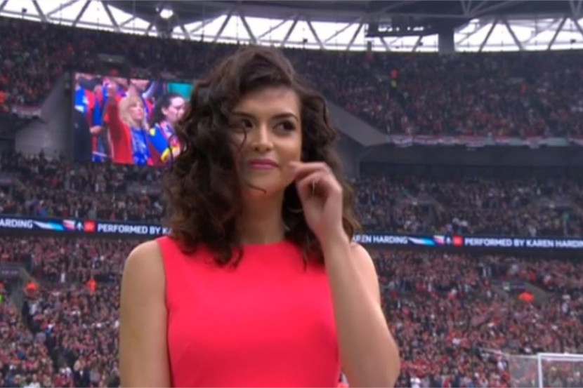 SUASANA di Stadium Wembley tergamam seketika apabila penyanyi Karen Harding yang diberi penghormatan menyanyikan lagu kebangsaan pada aksi akhir Piala FA Inggeris hanya tersenyum ketika muzik mula dibunyikan.