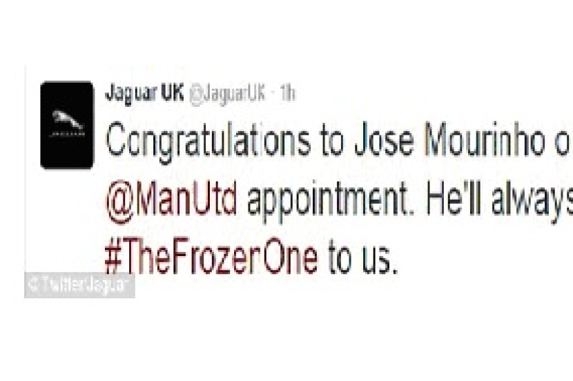 Jaguar memuat naik status di laman Twitter miliknya pada lewat Khamis malam: “Tahniah kepada Jose Mourinho di atas pelantikan @ManUtd. Dia akan sentiasa menjadi #TheFrozenOne kepada kita.”