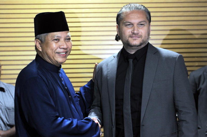 Annuar bersama jurulatih Kelantan, Popov (kanan).