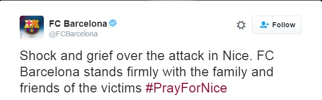 Manakala kelab Barcelona turut melahirkan rasa terkejut dan sedih dengan insiden terbabit.