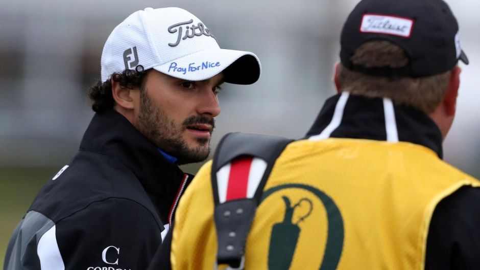 Selain itu pemain golf Perancis, Clement Sordet turut menulis 'Pray For Nice' di topinya.