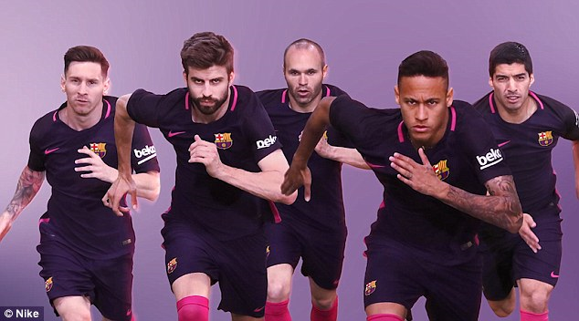 Dalam pengenalan jersi berkenaan, Barcelona membariskan bintangnya iaitu Andres Iniesta, Gerard Pique, Neymar, Lionel Messi dan Luis Suarez model.