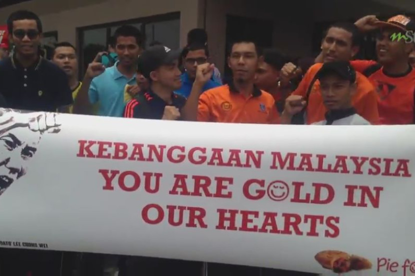 Biarpun cuaca panas, mereka yang mula berkumpul seawal 12 tengah hari langsung tidak berganjak disamping mengibarkan bendera Malaysia serta melaungkan kata-kata sokongan 'Malaysia Boleh'.