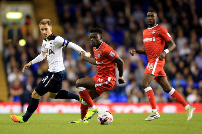 Aksi perlawanan antara Tottenham Hotspur dan pasukan Gillingham.