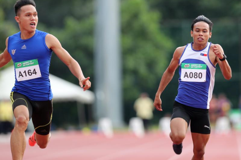 Badrul Hisyam (kanan) terpaksa berpuas hati di tempat kedua pada saingan akhir 100 meter Terbuka Malaysia pada Jumaat.