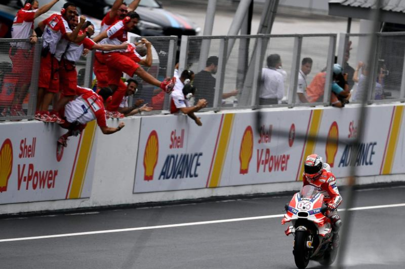 Sebelum itu, kedudukan pertama dikuasai Rossi namun dipintas Dovizioso pada lima lap terakhir.