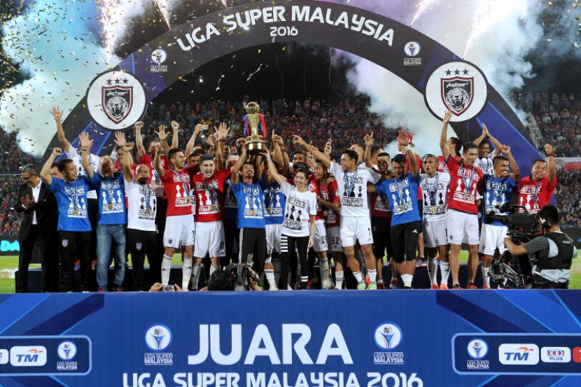 Pasukan JDT meraikan kejayaan bersama Presiden Kelab Bola Sepak JDT Tunku Aminah Sultan Ibrahim menjulang Piala Liga Super 2016 selepas perlawanan menentang T.Team di Stadium Tan Sri Hassan Yunos Larkin pada 24 September 2016. - BERNAMA