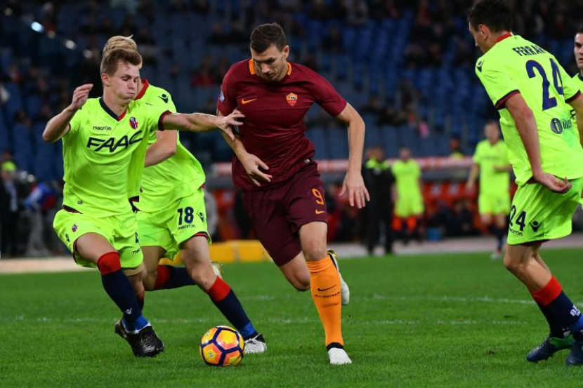 Aksi perlawanan antara pasukan Bologna dan AS Roma.
