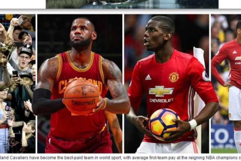 SKUAD bola keranjang Cleveland Cavaliers menjadi pasukan yang mendapat bayaran tertinggi dalam dunia sukan, dengan bayaran purata £6.5 juta (RM35.02 juta), manakala Manchester United merupakan pasukan bola sepak dengan bayaran tertinggi di dunia, £5.77 juta seorang (RM31.09 juta) bagi musim ini.
