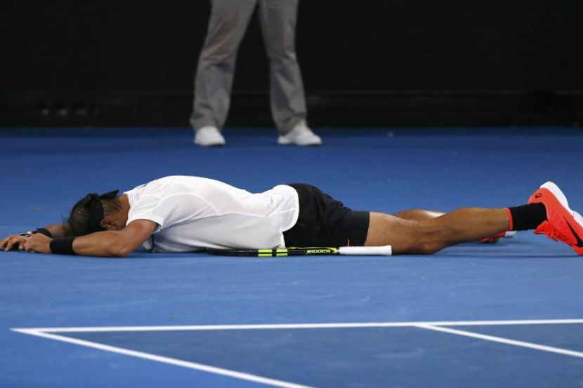 RAFAEL Nadal mengambil masa hampir lima jam untuk menumpaskan Grigor Dimitrov 6-3 5-7 7-6(5) 6-7(4) 6-4 bagi memastikan tiket ke aksi akhir Terbuka Australia menjadi miliknya.