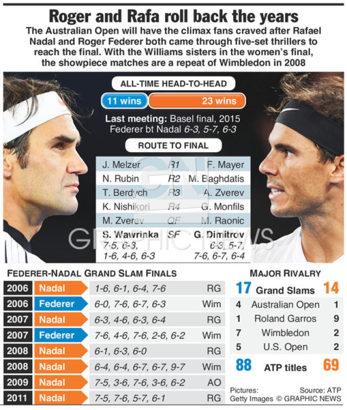 Rafael Nadal lwn Roger Federer (4.30 petang, Rod Laver Arena, Melbourne)
