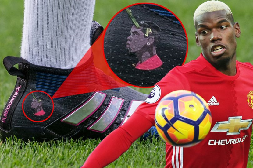 WAJAH Paul Pogba ada di mana-mana dan kini terpampang di but pemain Manchester United itu sendiri.