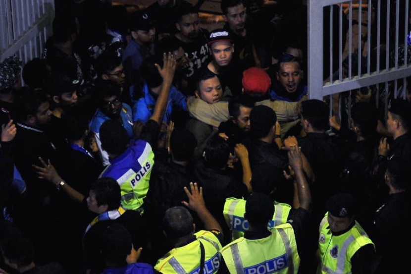 Mereka turut membaling botol air mineral dan mercun ke arah pasukan Rela dan anggota polis yang berkawal di hadapan pintu masuk stadium.