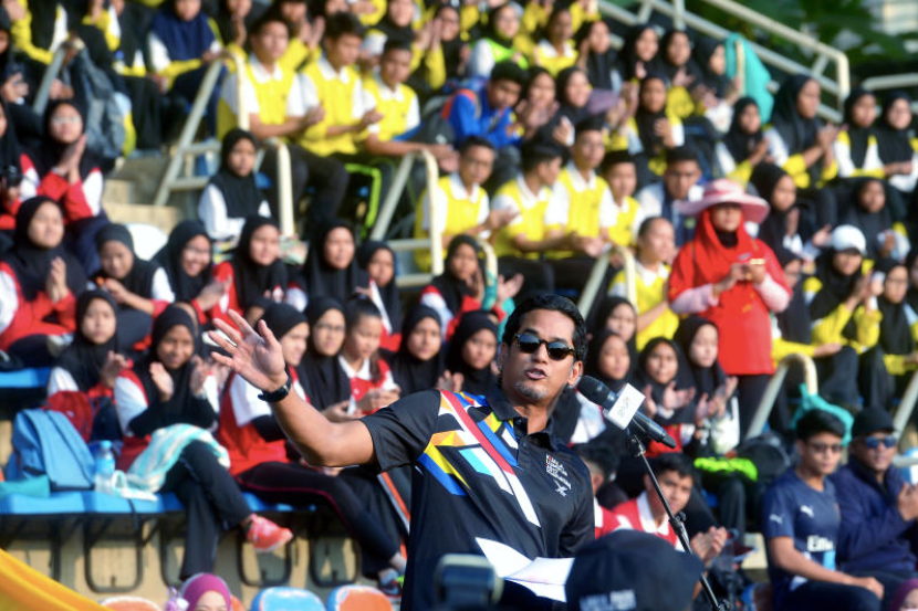Khairy Jamaluddin berucap merasmikan program KL2017@SEKOLAH sempena mempromosikan temasya Sukan SEA dan Sukan Para Asean 2017 di Sekolah Menengah Kebangsaan Putrajaya Presint 8 (1),Jumaat. Foto: Bernama