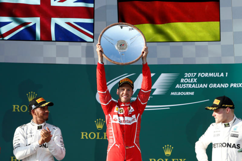 PELUMBA Ferrari, Sebatian Vettel muncul sebagai juara pada pembukaan perlumbaan pertama Grand Prix Formula Satu (F1) Australia yang berlangsung di Litar Albert Park, Melbourne pada Ahad.