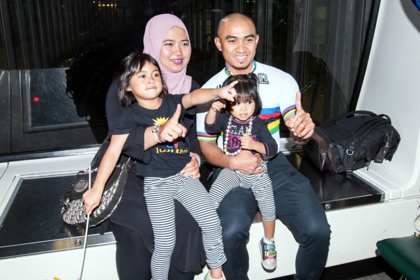 Namun, paling mencuri tumpuan ialah apabila pelumba berusia 29 tahun dari Dungun, Terengganu itu disambut isterinya, Athiah Ilyana Abd Samat serta dua anak perempuannya, Amna Maryam, 4, dan Amna Khadeeja berusia setahun.