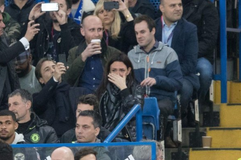 Isteri Conte, Elisabetta Muscarello yang turut menyaksikan perlawanan itu dilihat sebak mendengar nyanyian untuk suaminya.