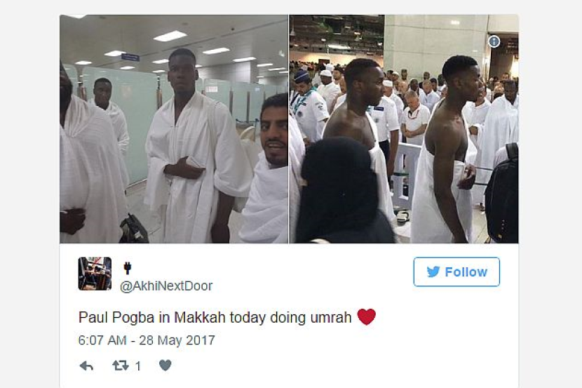 “Paul Pogba di Makkah hari ini, melakukan umrah,” tulis seorang pengguna akaun Twitter @AkhiNextDoor.