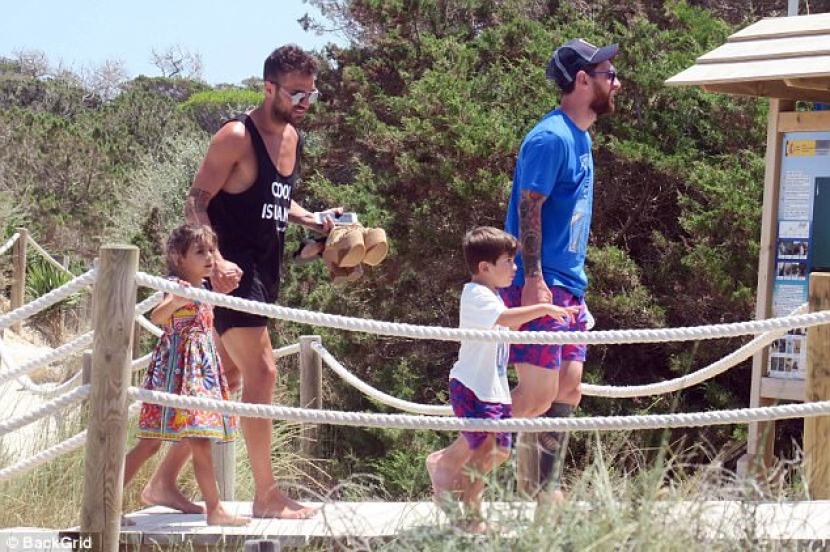 Messi, bersama temannya wanitanya, Antonella Roccuzzo dan anak sulung mereka Thiago dilihat telah mencelupkan kaki dalam air sebelum berjalan di sepanjang pantai.