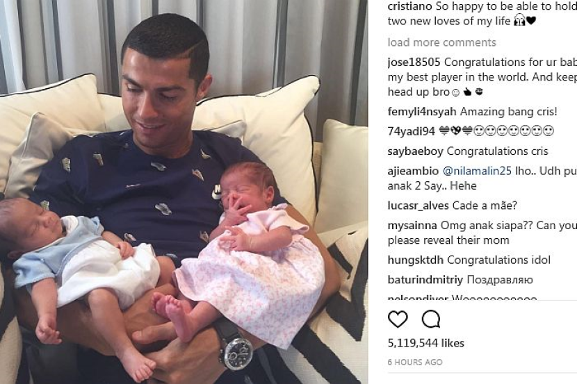 Ronaldo juga buat pertama kali telah memperkenalkan pasangan kembarnya di laman Instagram, awal pagi Jumaat.