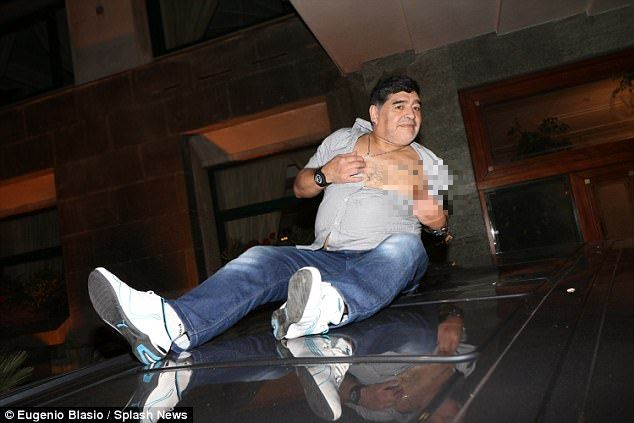 Bekas pemenang Piala Dunia yang berusia 56 tahun itu mencuri tumpuan peminatnya dengan aksi mendepakan tangan dan kelihatan mabuk ketika orang ramai mula menjerit namanya. - Mail Online