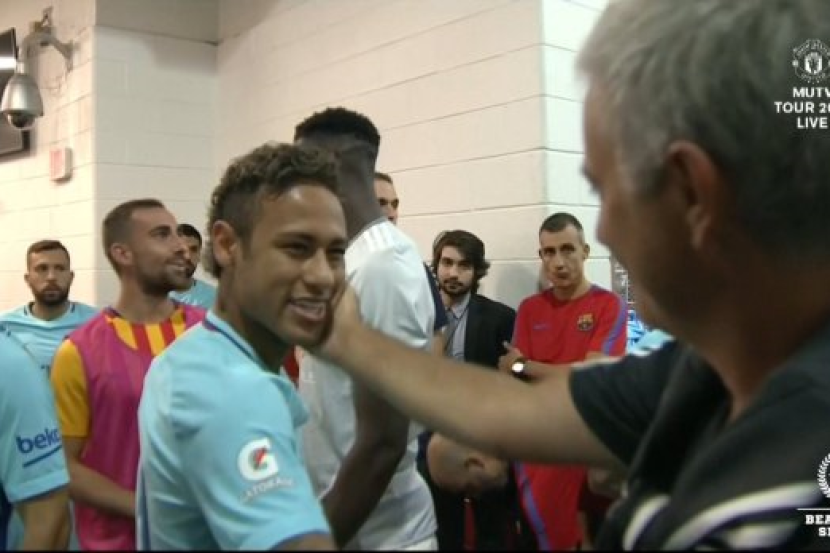 Mourinho dan Neymar berpelukan sebelum perlawanan yang menyaksikan Manchester United tewas 1-0 kepada Barcelona dalam siri jelajah pramusim ke Amerika Syarikat.