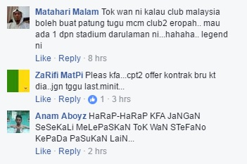 Berdasarkan komen di Facebook rasmi KFA, rata-rata penyokong berharap Stafeno meneruskan khidmat bersama Lang Merah.