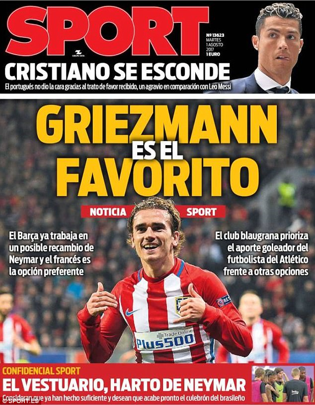 Laporan Sport tentang Griezman yang akan menggantikan Neymar di Barcelona.