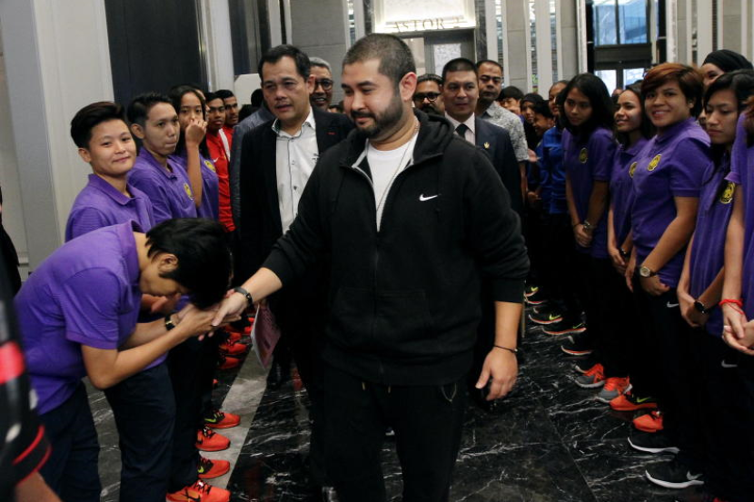 Tunku Ismail bertemu skuad B-22 dan pemain futsal Sukan SEA 2017 di ibu negara pada Ahad. foto RICKY LAI/The Star