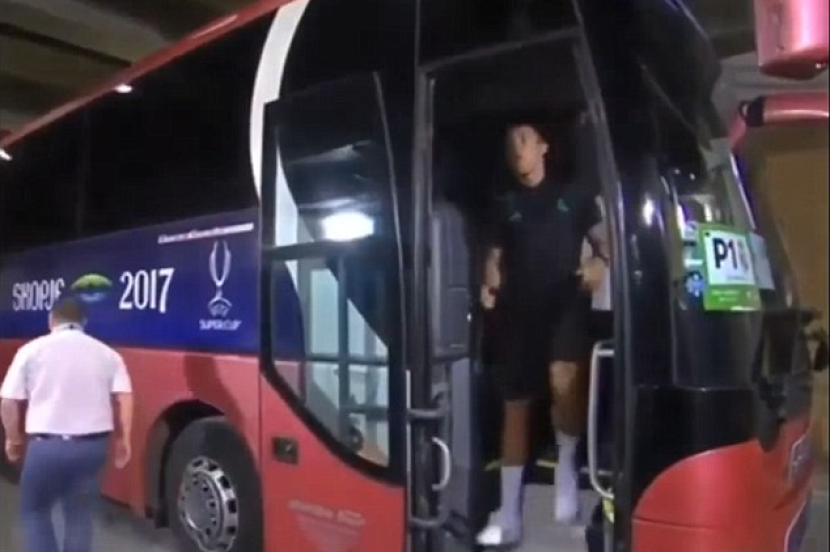 Kejadian itu berlaku ketika bas pasukan Real Madrid tiba di Skopje sebelum perlawanan Piala Super Eropah bertemu Manchester United.