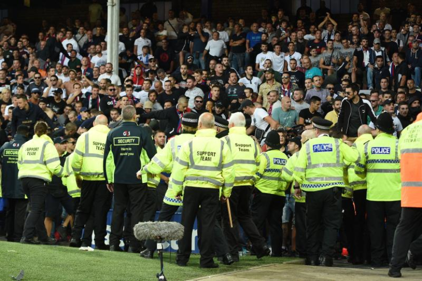 Bagaimana pun perlawanan kedua-dua pasukan terpaksa dihentikan selepas Michael Keane menyumbat gol pertama pada minit ke-30, gara-gara tindakan penyokong lawan membuat huru-hara.