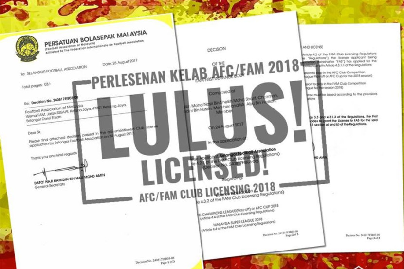 "Rasmi! FA Selangor telah menerima lesen kelab dari The Asian Football Confederation dan FAM (Persatuan Bola Sepak Malaysia) bagi 2018 sekali gus membolehkan Red Giants bermain di Liga Super dan Piala AFC (jika layak) musim depan," menurut kenyataan tersebut.