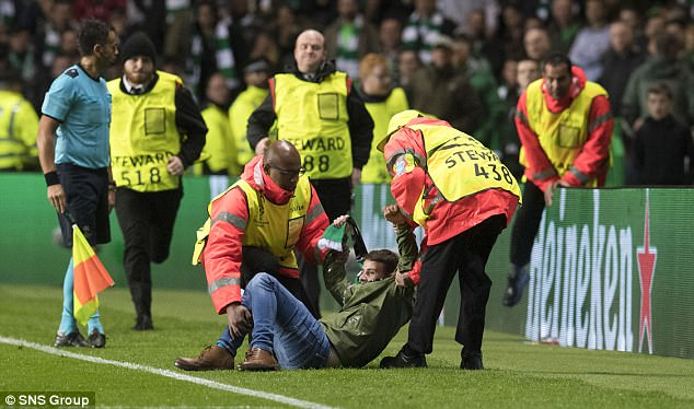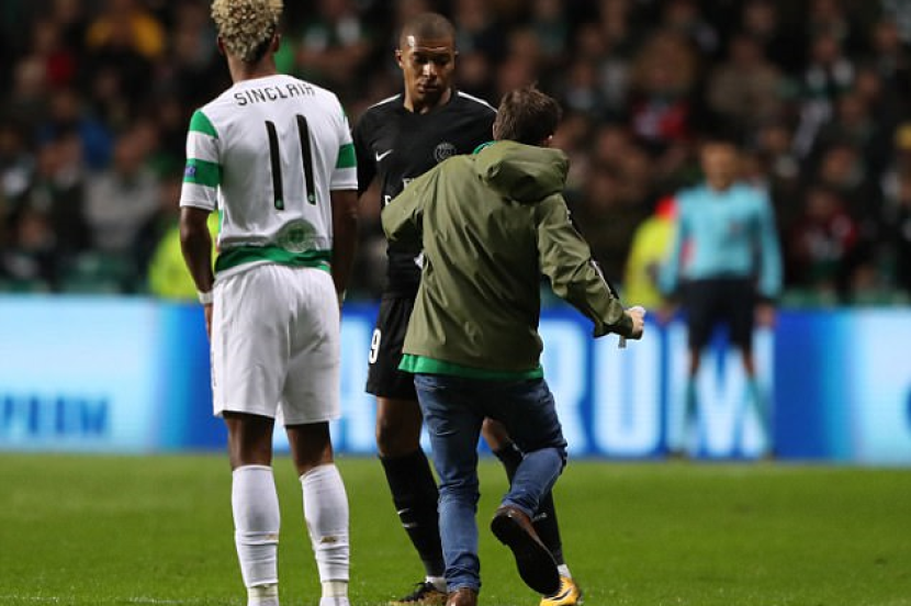 SEORANG penyokong Celtic cuba menyepak Kylian Mbappe.