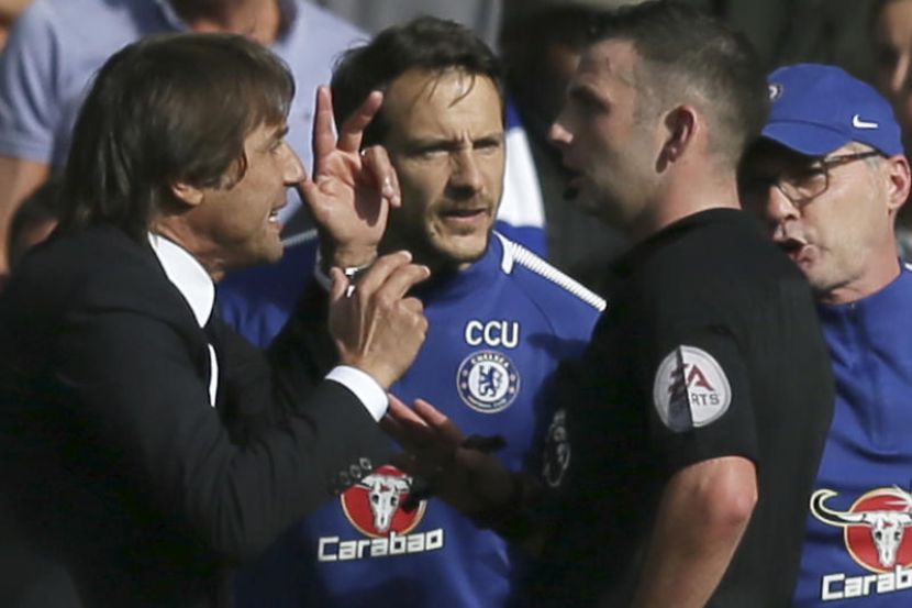 PENGURUS Chelsea Antonio Conte ‘silap’ apabila tidak puas hati dengan kad merah yang dilayangkan ke atas David Luiz ketika menentang Arsenal pada Ahad.