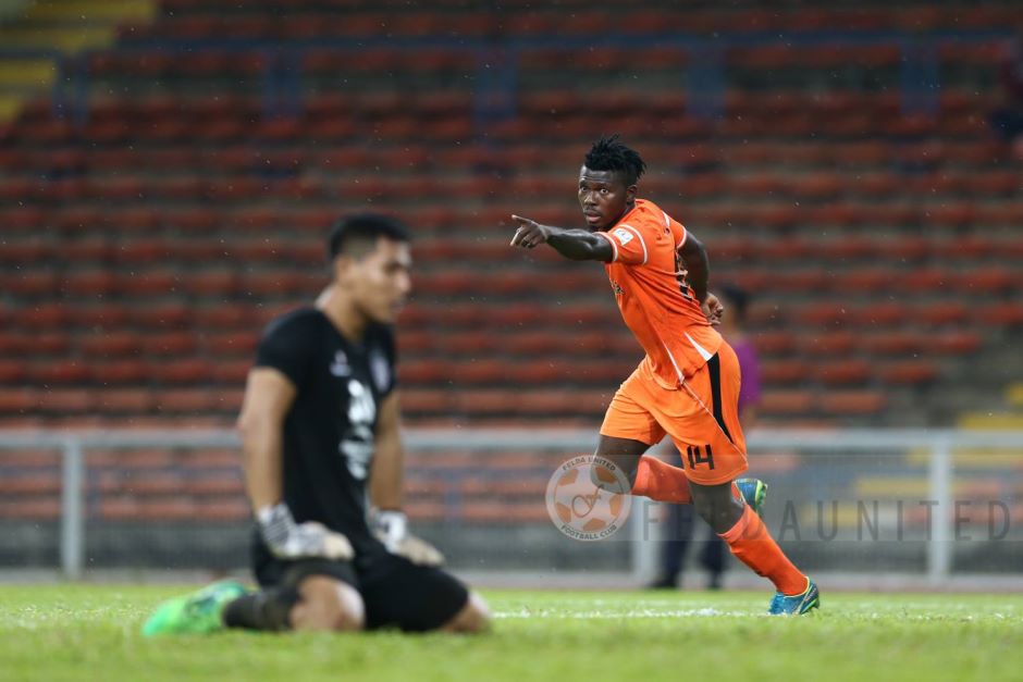 Serangan bertali arus Felda United membuahkan hasil apabila Ifedayo Olusegun Patrick Omosuyi meledak gol kedua pada masa tambahan babak pertama.
