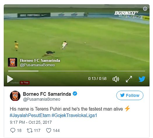 "Disebabkan kurangnya teknologi dalam bola sepak Indonesia, kepantasan sebenar Puhiri ketika menjaringkan gol ketiga Borneo FC tidak dapat dipastikan. Namun, berdasarkan video itu dia mungkin mengalahkan kepantasan Leroy Sane," demikian Daily Mail dipetik sebagai berkata.
